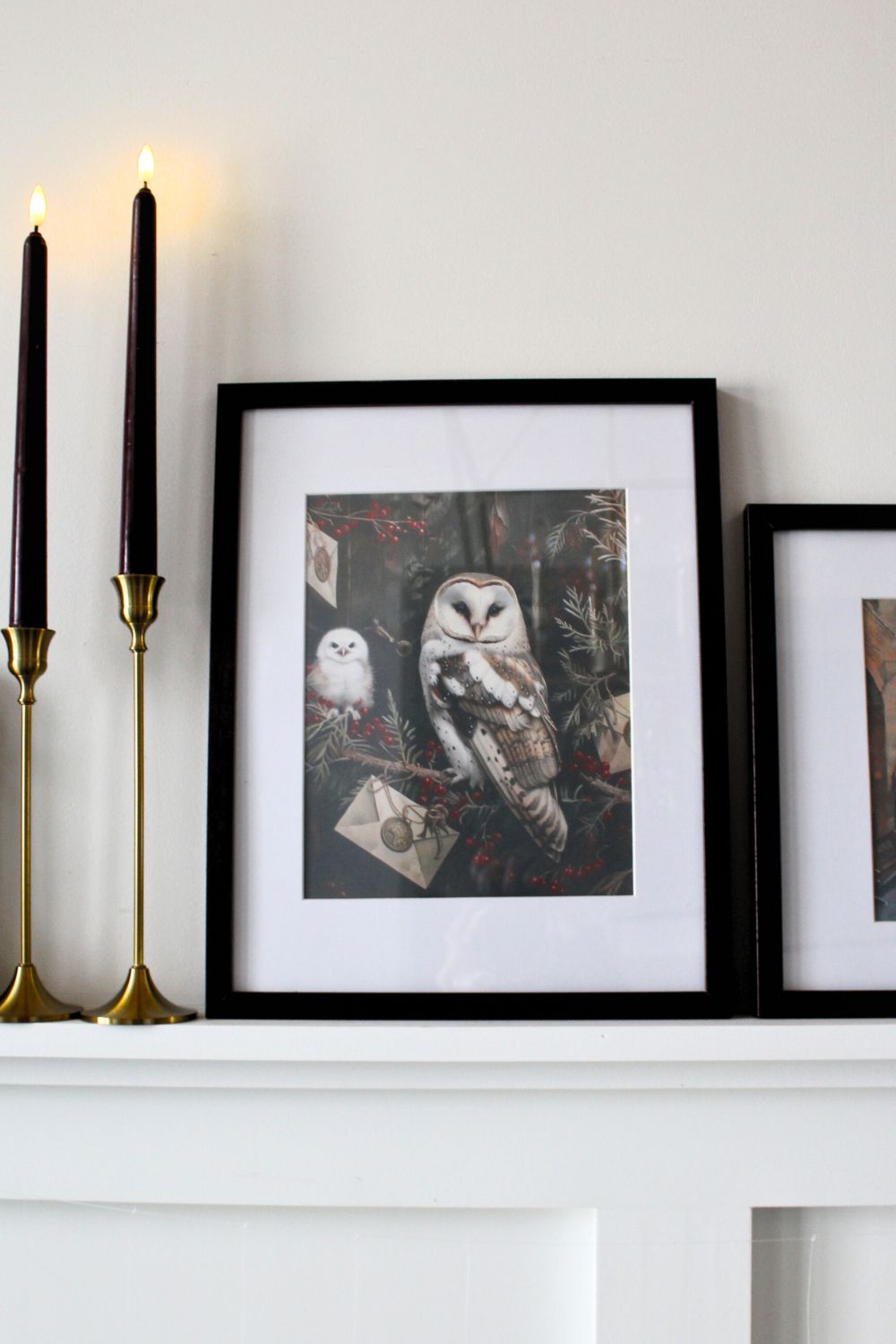 Another Harry Potter Christmas must-have is art! I found beautiful Harry Potter downloadable art on Etsy but my absolute favorite was the Christmas Owl art piece! Trust me when I say this photo DOES NOT DO IT JUSTICE!