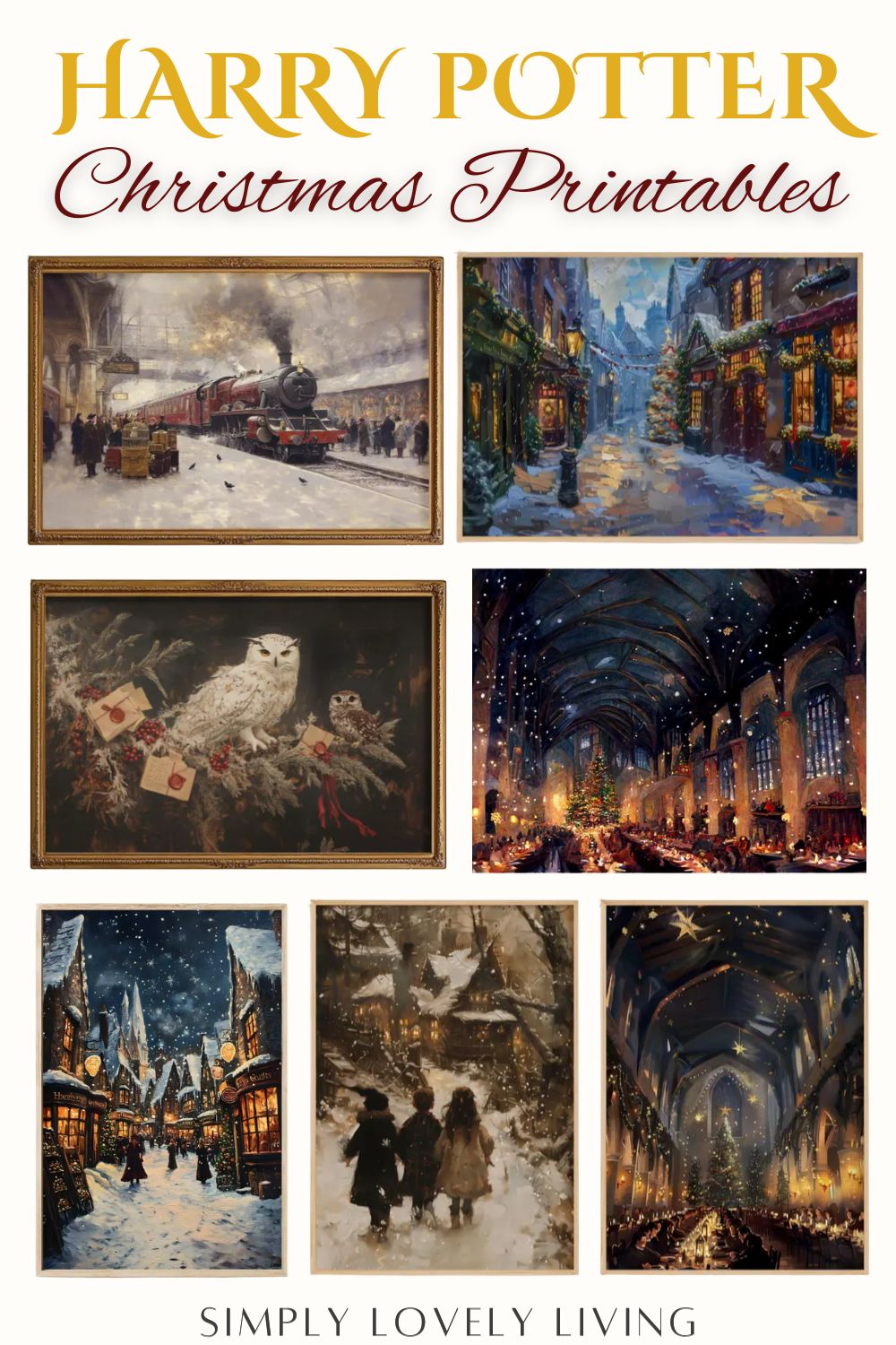 ThisHarry Potter Train Station art piece is beautiful as well! I even used it as a backdrop for my son’s Harry Potter Birthday invitation! These prints are SO AFFORDABLE. If you have a printer all you need is cardstock paper and a pretty frame to display them in! Here are some more Harry Potter Christmas Printables I found!